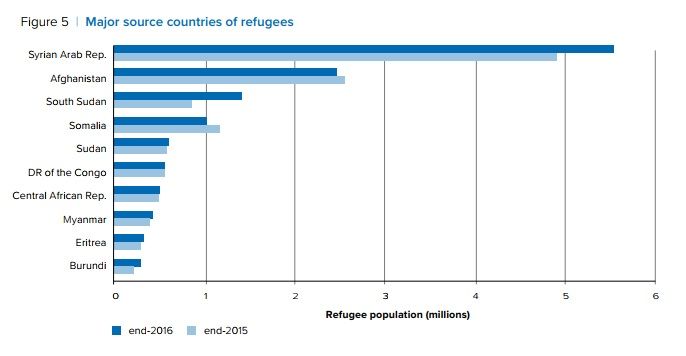 ​・世界で主要な難民発生(=Source)国の数字 (UNHCR)​
