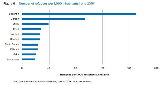 難民発生国の最大はシリア、次にアフガニスタン、南スーダン、