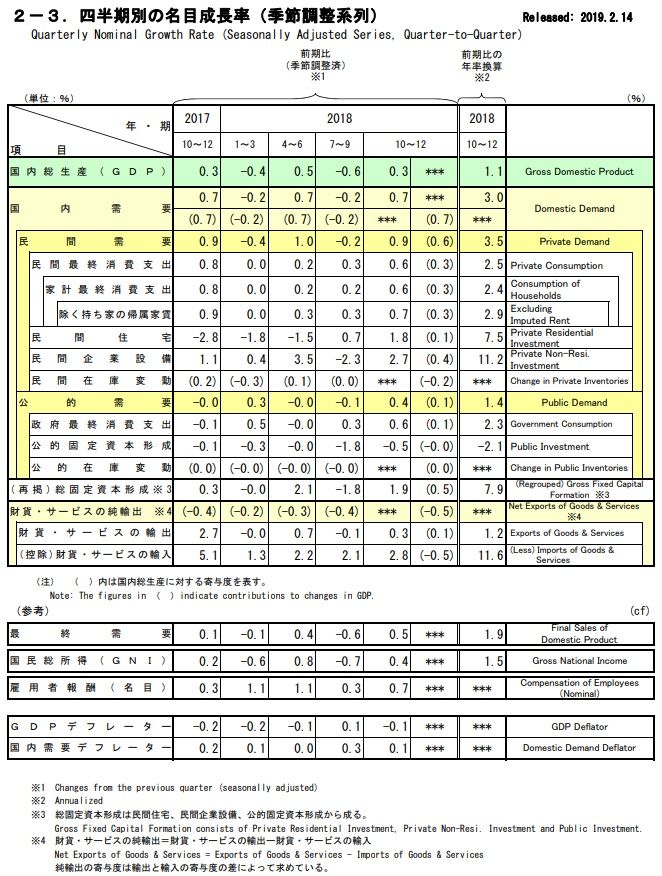 ​今10~12月期の0.3%の伸びの内容を見ると、​