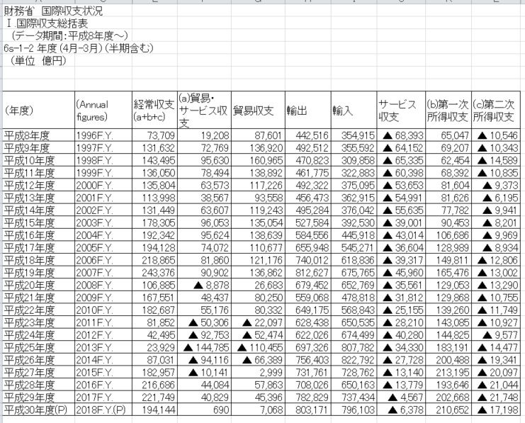 ​ 我が国の柱である 第一次所得収支 は1996年度では​