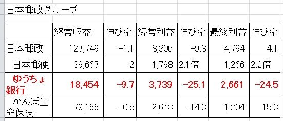 「ゆうちょ銀行」の業績を見てみたい。