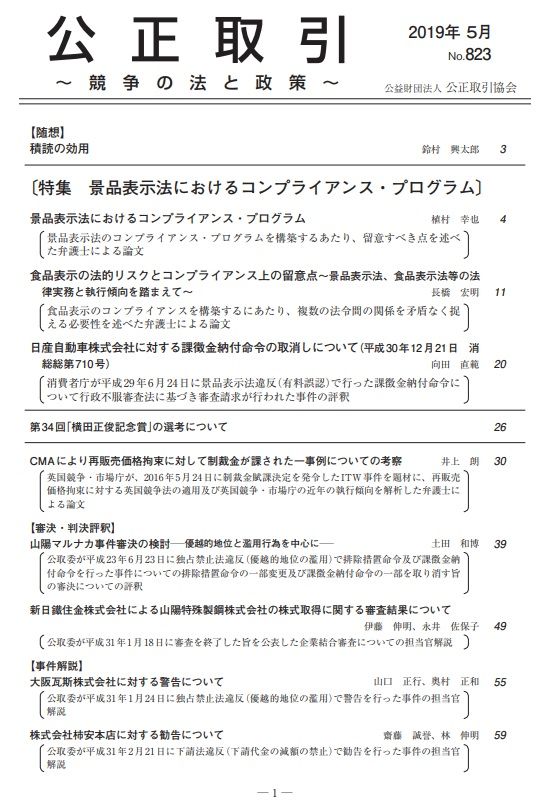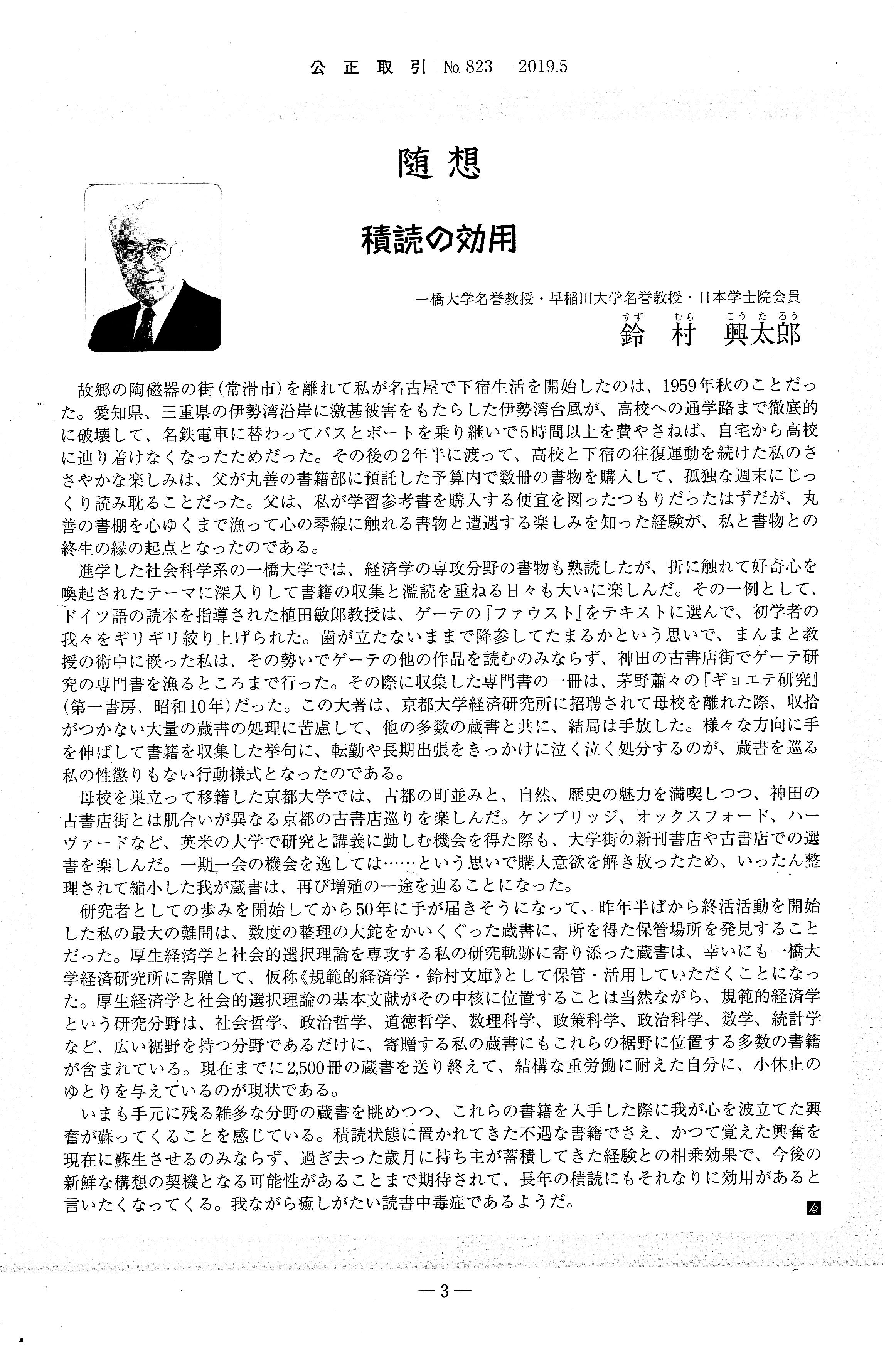 ​前略 公正取引委員会発行・月刊誌「公正取引」を、
