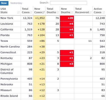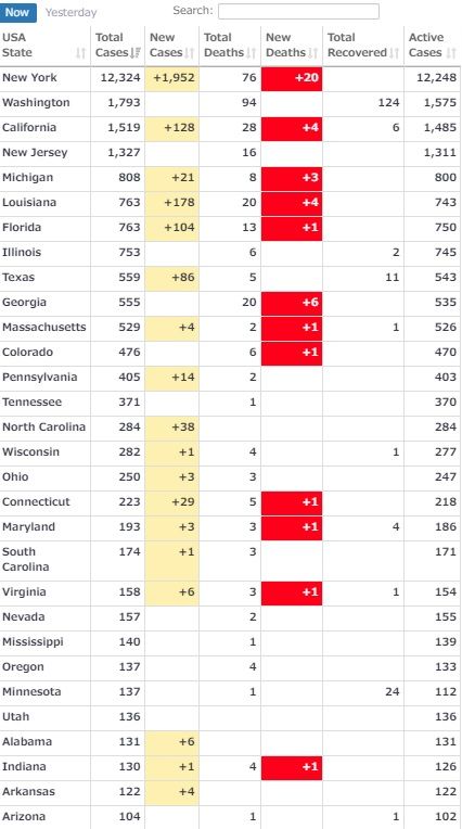 *米国内の各州の感染者順位