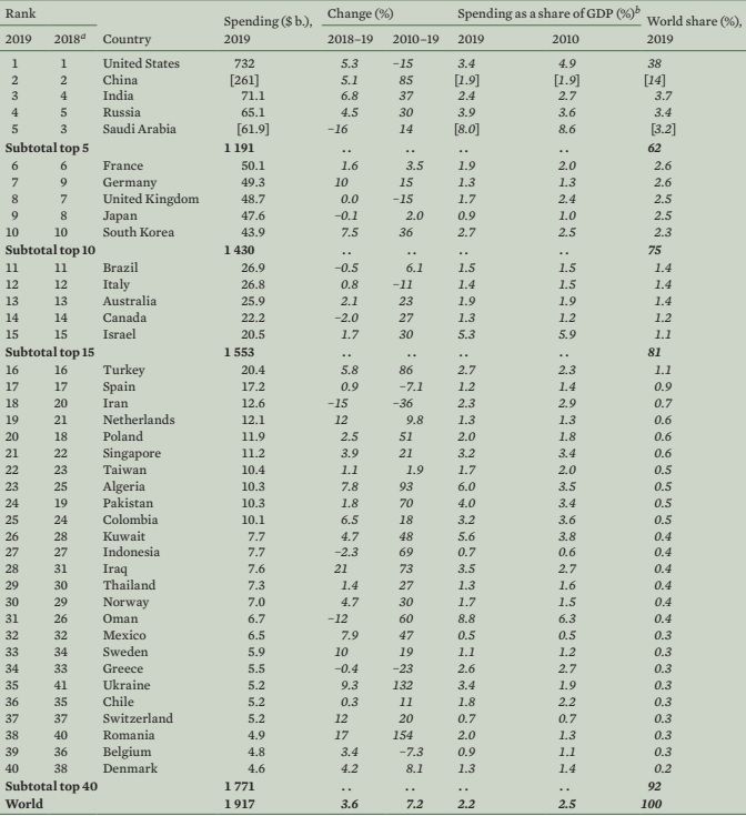 東南アジアの軍事支出は、2019年に4.2%増加し、