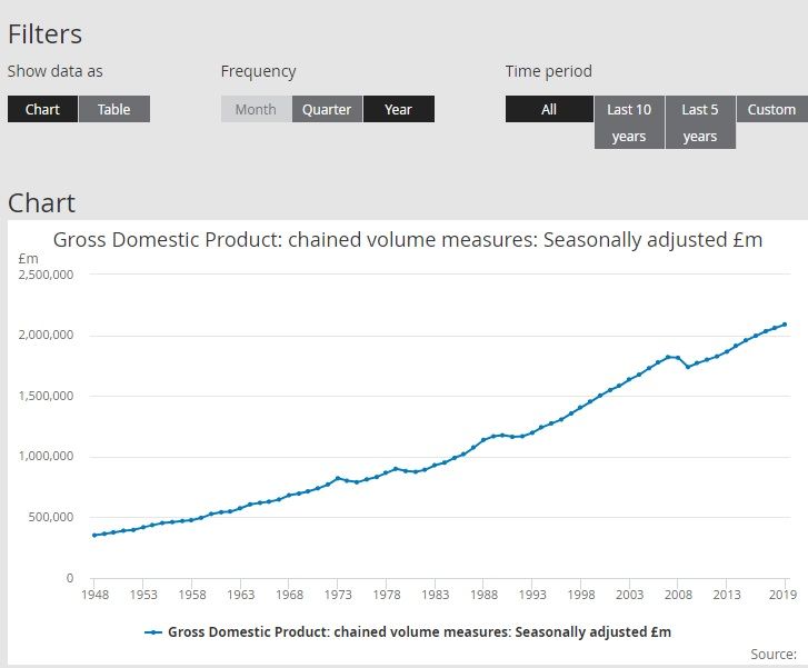 英国四半期ベースのGDP (季節調整済み)は下記。