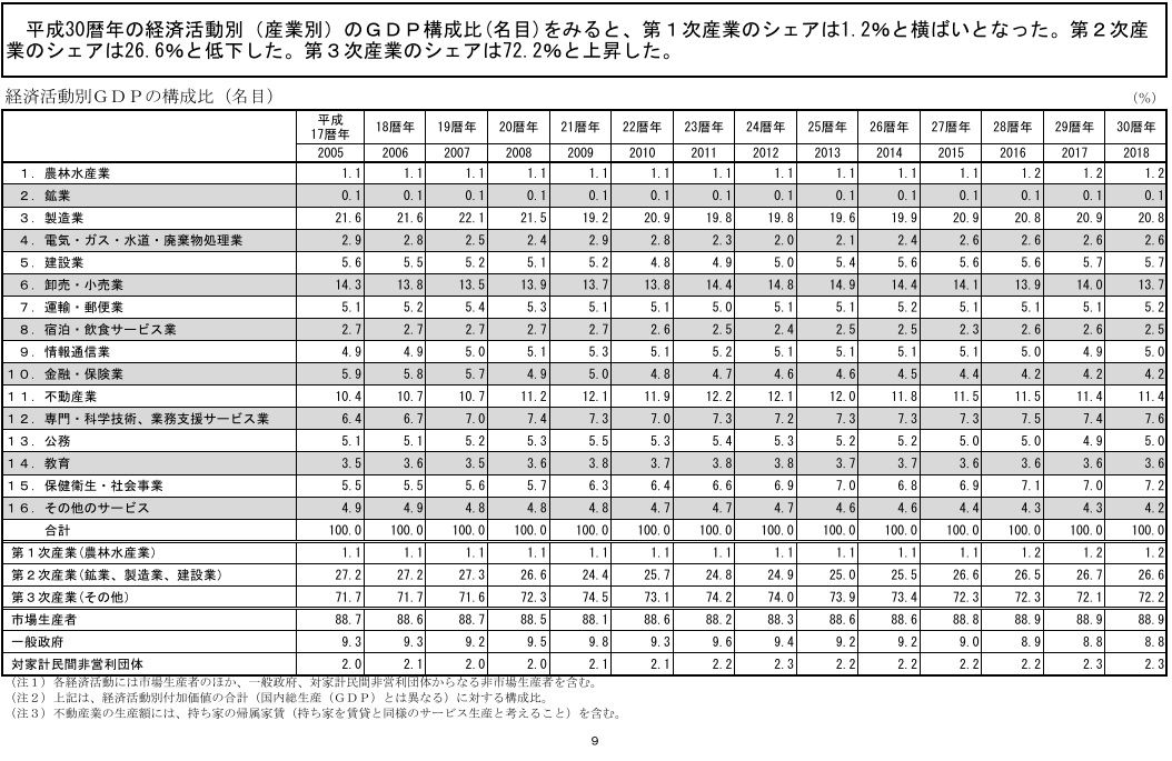 第二次産業「20.1%」・・・鉱業、製造業、建設業