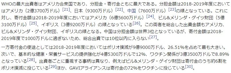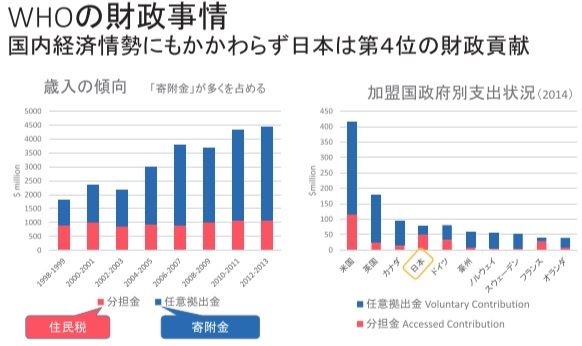 WHOは、各国から運営の資金援助を得る必要があるが、
