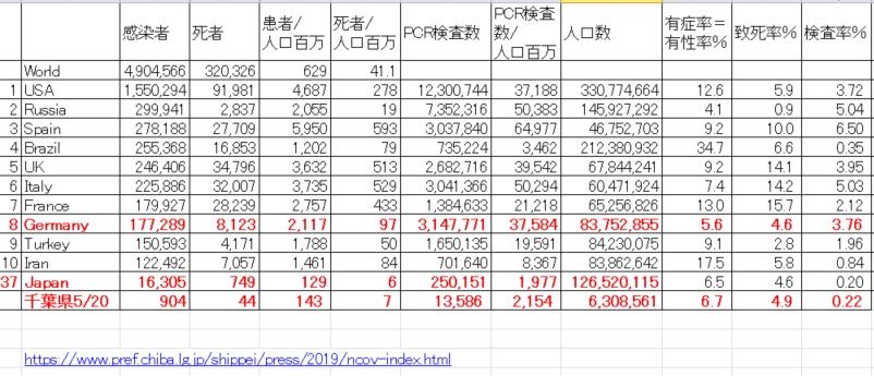千葉県庁の数字を世界のWorldmetersの数字に合体させたもの。
