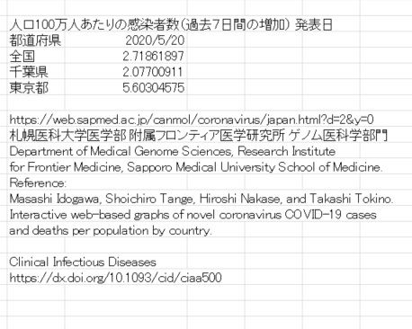 ​「過去7日分 の新規感染者数/ 人口百万人 」で