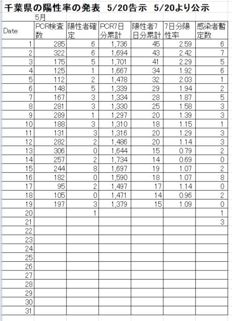 1.千葉県が5月21日から陽性率を公表し始めた。