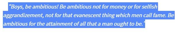 Boys be ambitious " in God " !