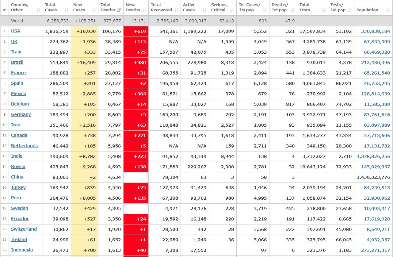 ​​​https://www.worldometers.info/coronavirus/