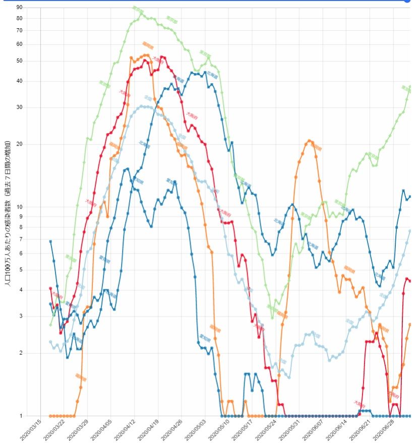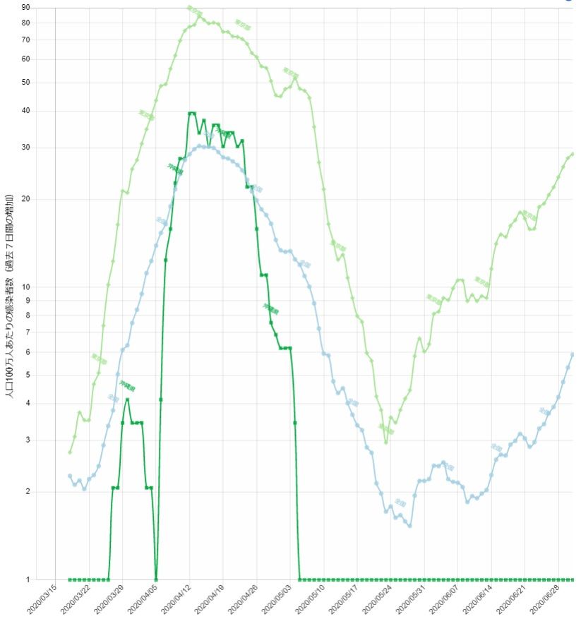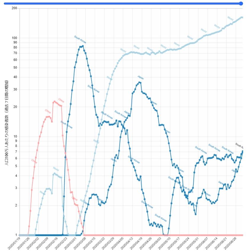 [人口100万人あたりの感染者数(過去7日間の増加)]