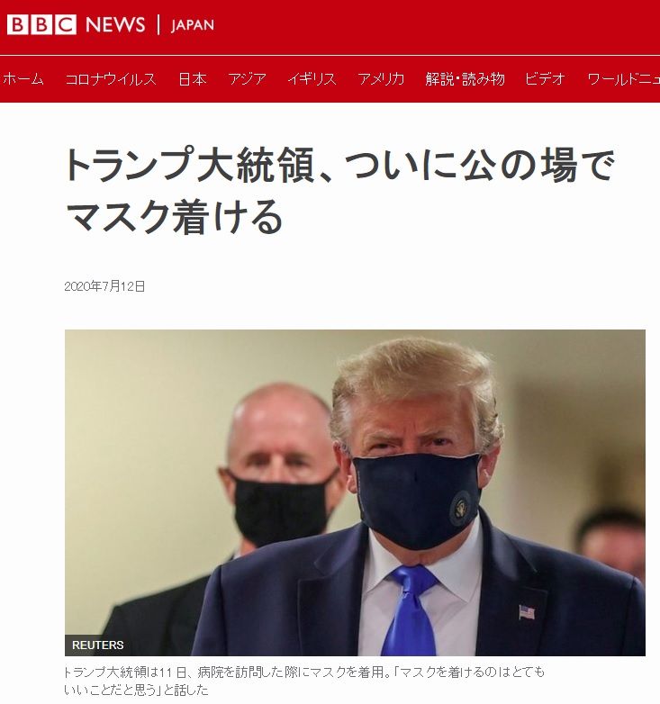 ​ トランプ大統領も格好の良いマスクを付け始めている。