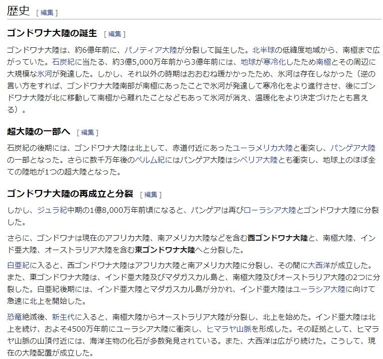 WIKIPEDIAが地球の大陸の成立と分裂の