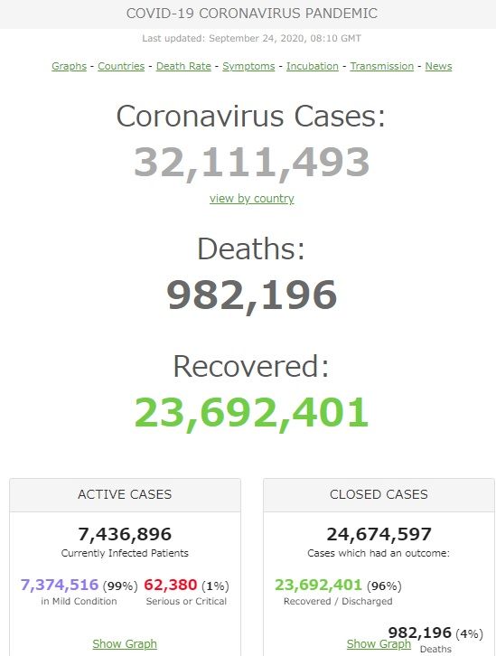 世界の感染者数 32百万人時代へ。