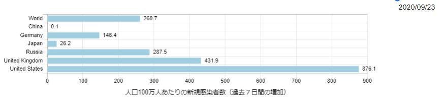 人口百万人当たりの新規感染者数