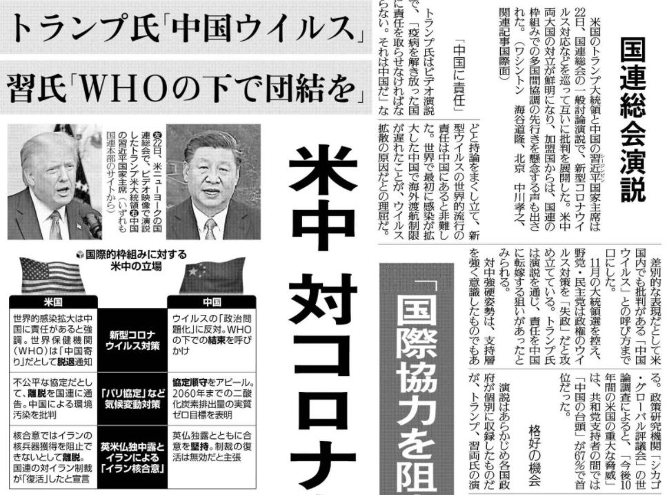 米国は、 中国が感染者数では、世界の発表とは