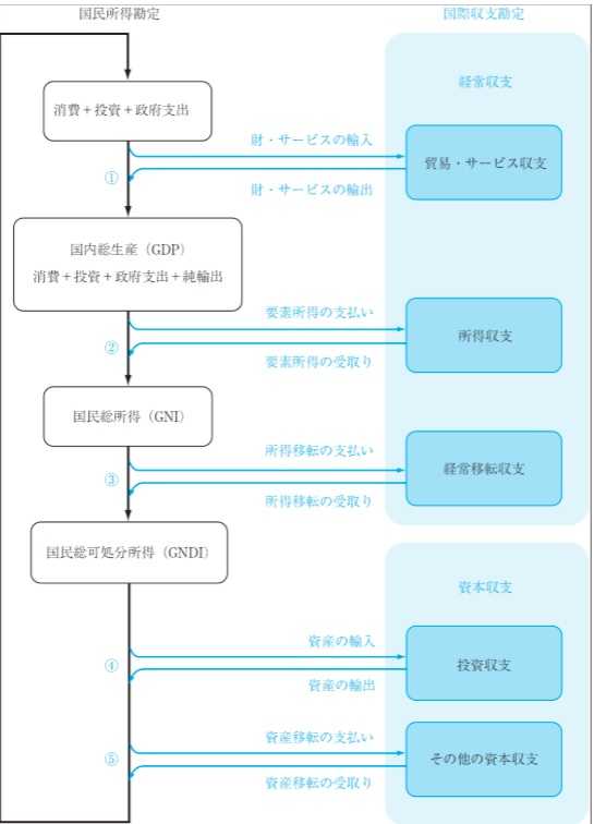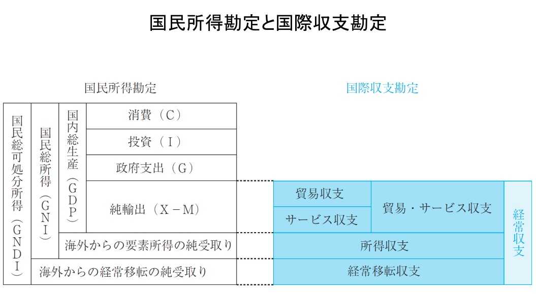 おおまかには輸入が貿易外収支​​(支出)を含む。