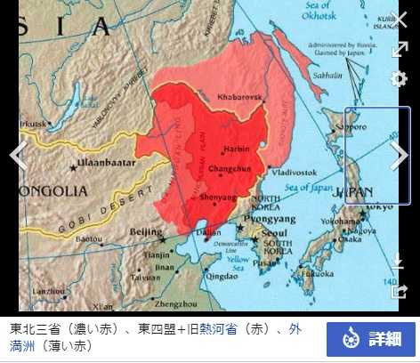 広義には旧満州国に相当する、東三省と内蒙古の東北部