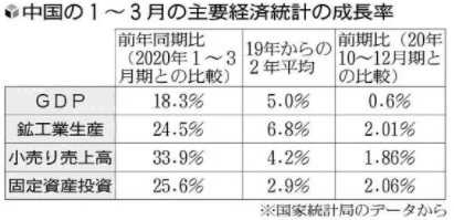 21年1~3月のGDPは19年の同期実績を10.3%