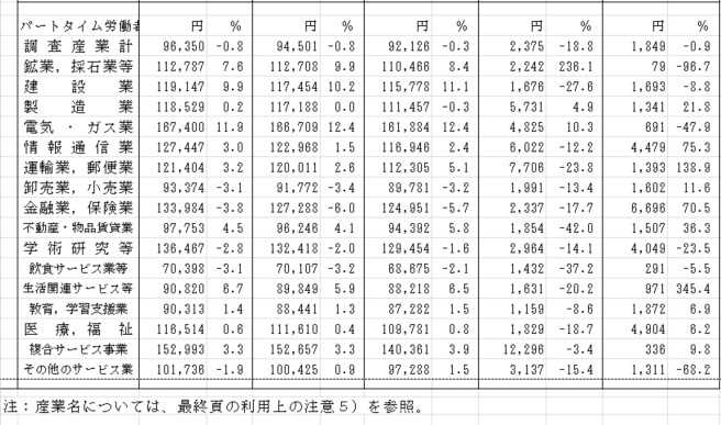 パートがそれぞれ賃金率が低下しているが、低賃金のパート