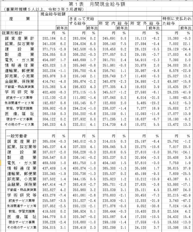 先の毎勤統計でもみられたように、一般労働者、