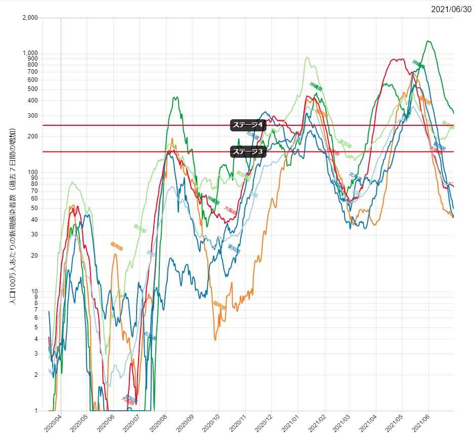 ​「COVID-19の7日間新規感染者/人口百万人」(=縦軸:Y)と