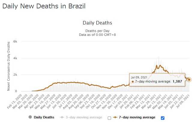 (4)コロナ感染でブラジルの新規死亡数
