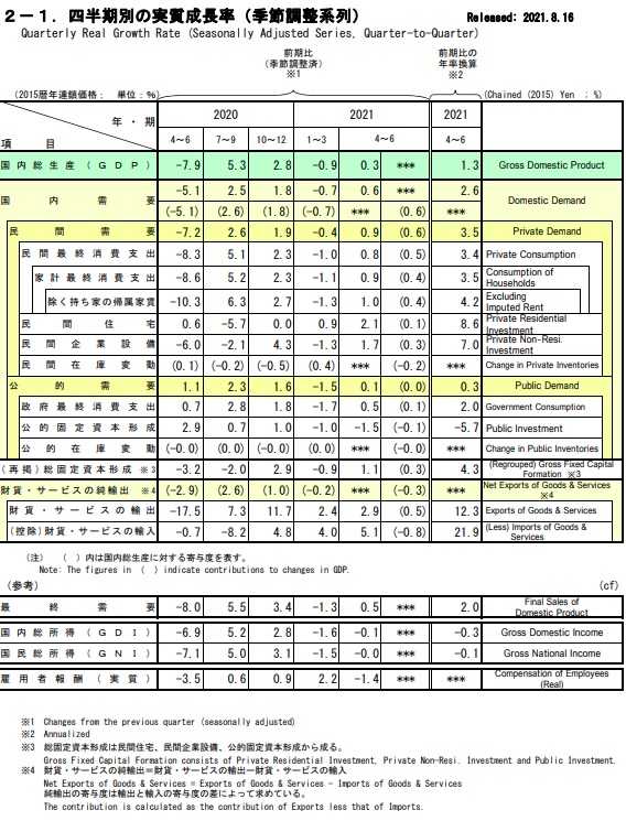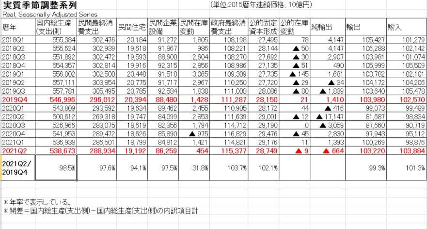 (2021Q2の「 季節調整済み実質Ip 」の前年同期比は+2.6%)