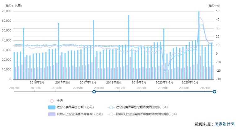 7月の ​消費財の小売販売額​ は 3兆4,925億元で、