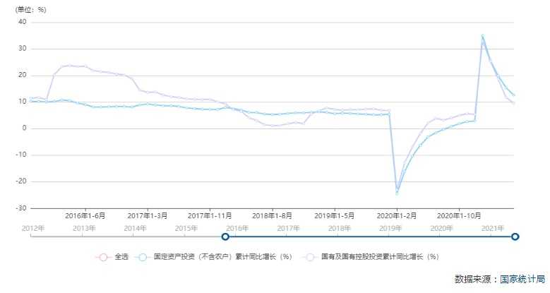 区分は「固定資産投資(農家を除く)」、うち「国有企業」