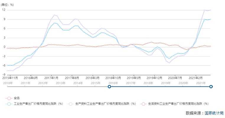 ​  ​区分は「PPI総合」、うち「生産資財PPI」、うち「生活資財」PPI ​​