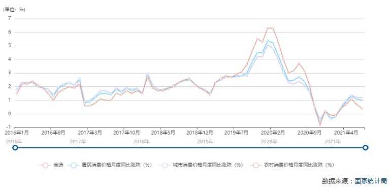 区分は「CPI総合」、「都市CPI」、「農村CPI」