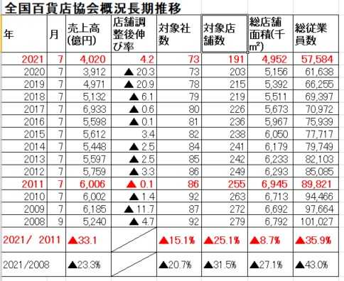 <資料は全国百貨店協会の月次資料を集めたもの>