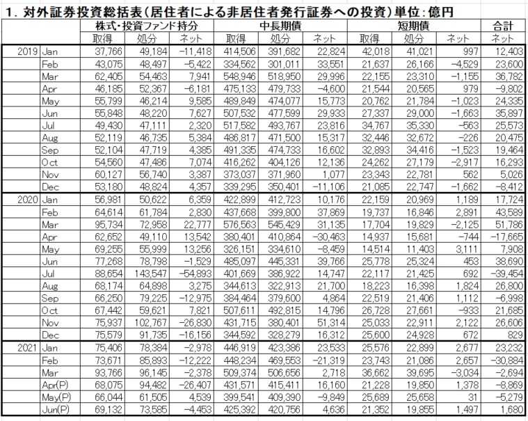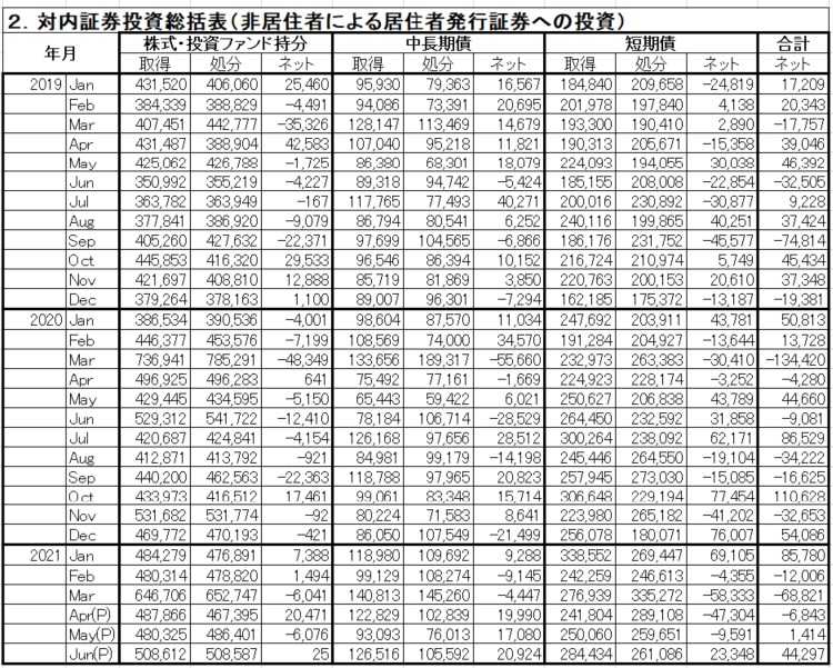 今年に入っては~逆に~「非居住者」の証券投資が多くなっている。