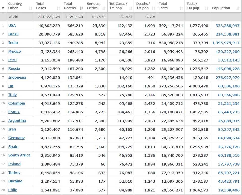 1位・・・USA      =66.6万人→ ​致死率/感染者:1.6%​