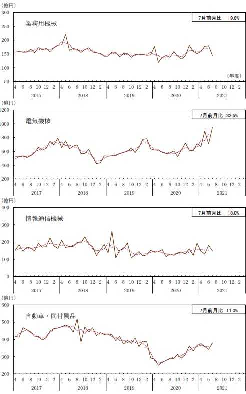 このうち原動機、重電機、電子・通信機械、産業機械に