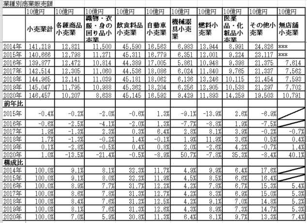 やっとであるが~年次の商業動態統計が
