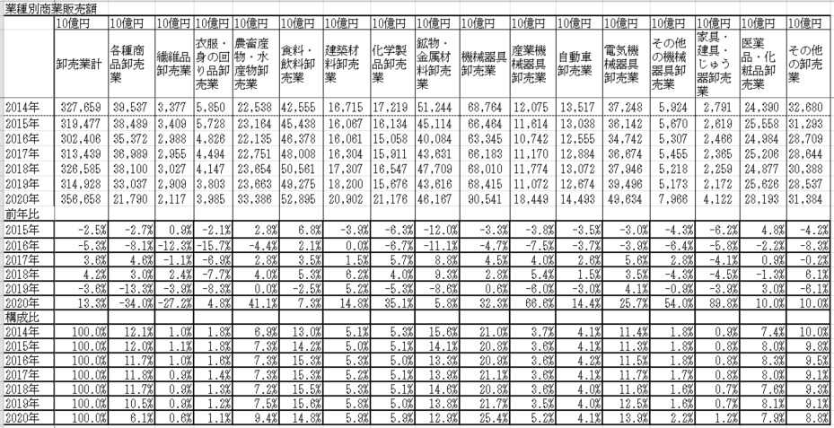 コロナ禍での卸売業の販売は +13.3%と伸びているが、