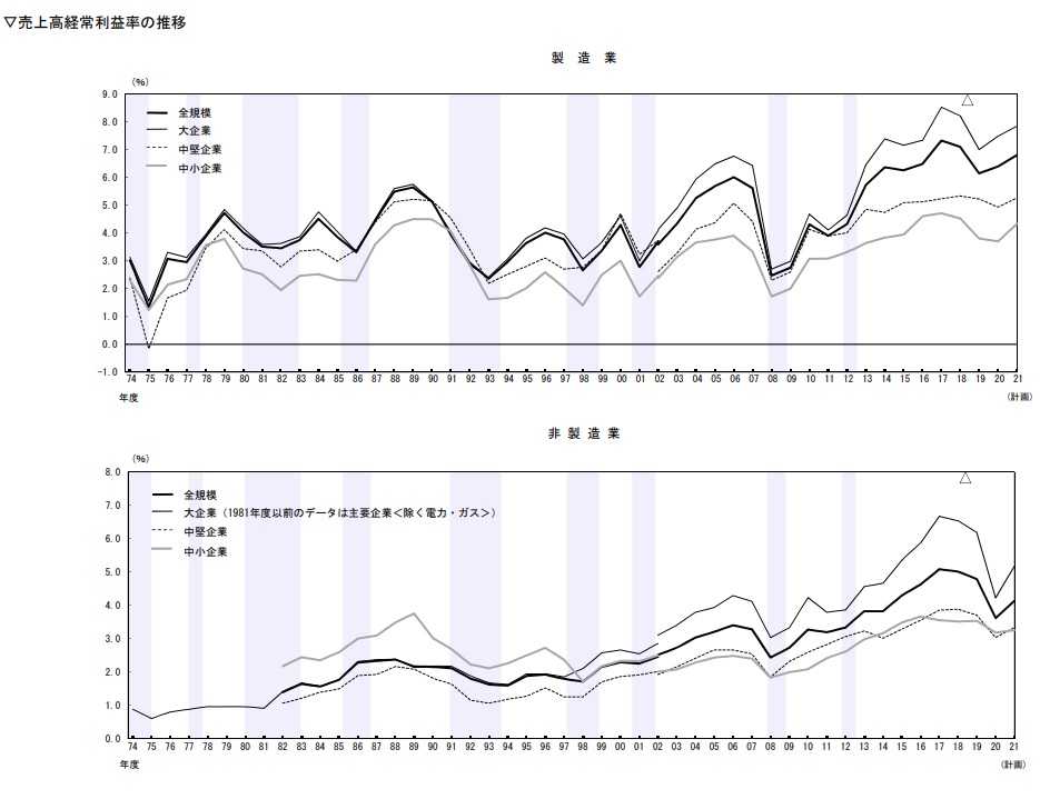 利益率は下がるが、非製造業では大企業と「中堅・中小企業」