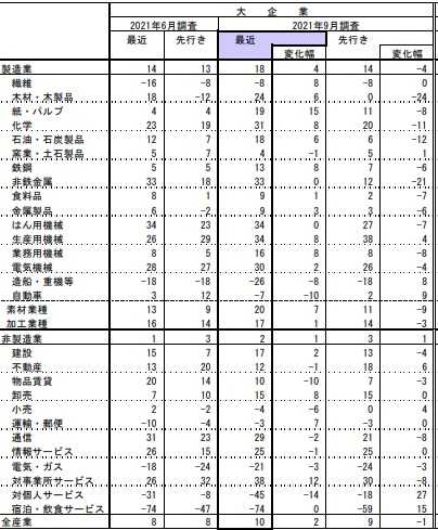 ​ 日銀(B.O.J)が10/1に「短観」を発表した。