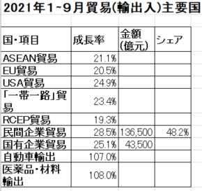 中国の2021年1~9月期の