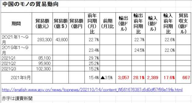 1.2021年1∼9月期のモノの貿易