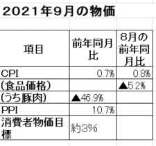 2.2021年9月の物価(CPI,PPI)