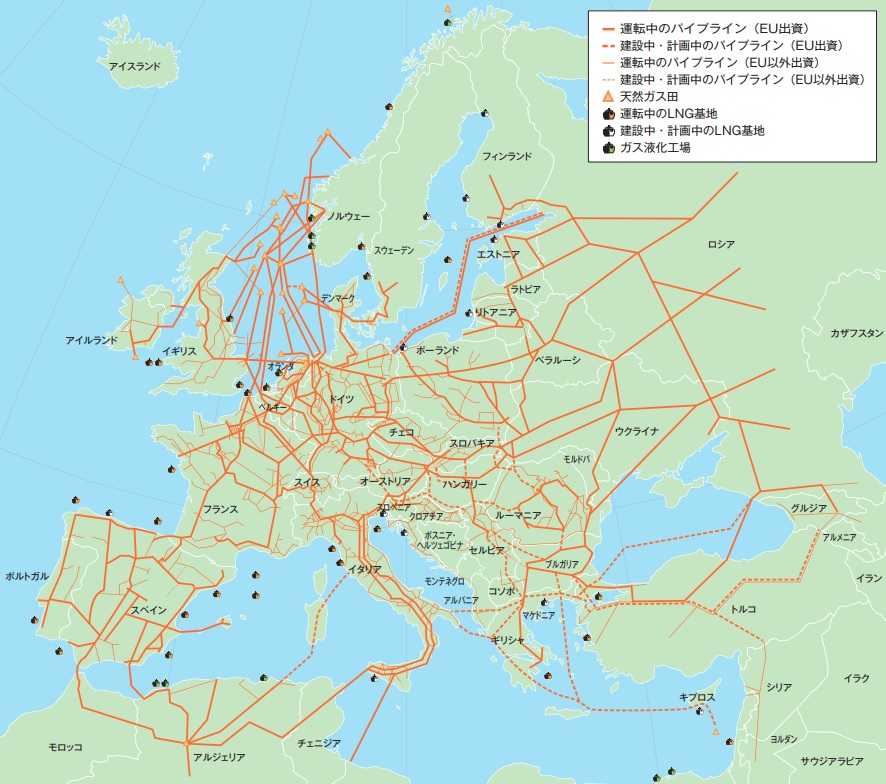 EU加盟国ではロシアからの天然ガスのパイプライン