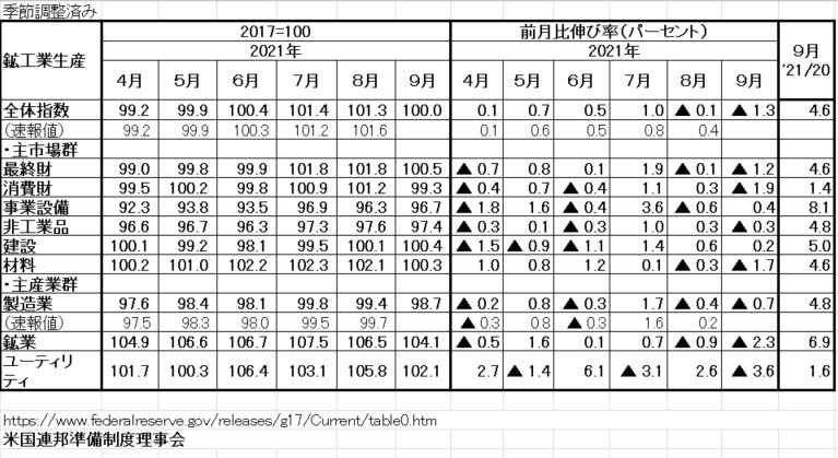 1.米国の鉱工業生産指数(IIP~欄外の注)と