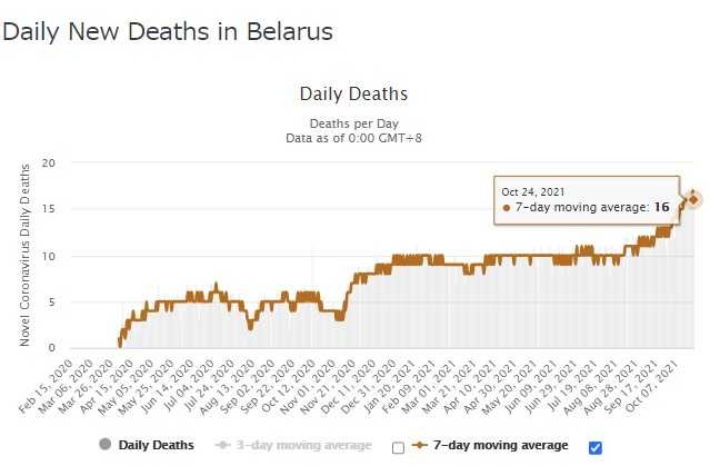 (3)ベラルーシの新規死者の直近7日間平均/日