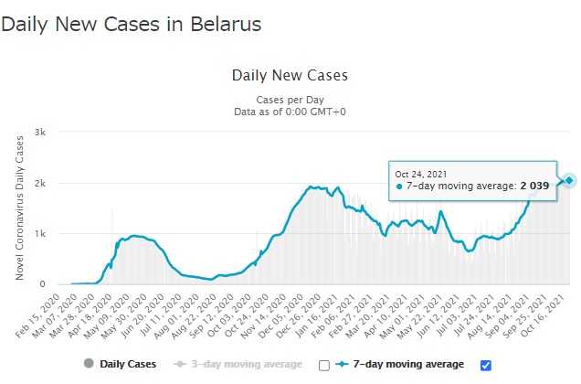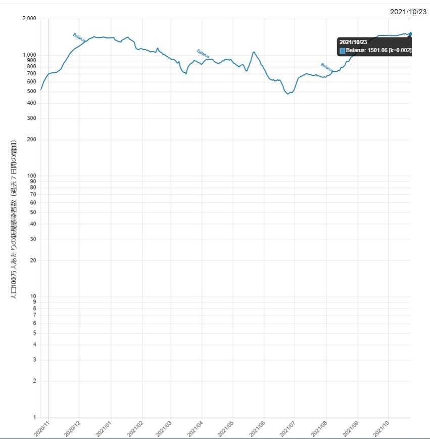 (2)ベラルーシの新規感染者の直近7日間平均/日