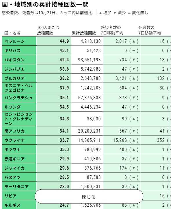 国民がワクチンに不信を感じるで蔓延が拡大国家(→:ロシア)